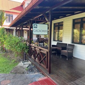 Zo beschikt het over vergaderruimtes in de genoemde voormalige koffieloods en een groot overdekt terras. Daarnaast bieden we thema activiteiten aan die aansluiten op de diverse nationale feestdagen’ aldus restaurantmanager Jermain Tjin-A-Koeng. ‘maar wat we ook doen, de rust staat centraal’ vult Soeradj Kaladin, coordinator Housekeeping/Front Office en de rest van het team unaniem aan.